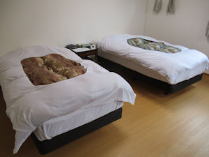 | 奥飛騨温泉郷新穂高温泉にある宿。 わんこ同宿OKの部屋がある。 ロビーにはフリードリンクの珈琲、紅茶があり、 マッサージ機も無料で利用できる。 お風呂は内湯2つ、露天2つある。 鍵が玄関に置いてあり、貸切で利用できる。 各部屋にはトイレが付いているが、 ウオシュレットは12畳の部屋のみ。 ペット用のアメニティは揃っている。 |